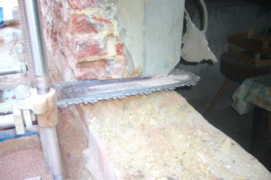 De techniek van het onderzagen is een techniek waarbij er een zaagsnede wordt gemaakt in een voeg. Vervolgens wordt een polyester- of polypropyleen membraan ingebracht en opgespiet volgens de dikte van de zaagsnede. Daarna wordt de snede opnieuw opgevuld met mortel. Hieronder alvast een aantal foto’s van reeds uitgevoerde werkzaamheden waarbij onderzagen door Dryhome Solutions werd gebruikt als vochtbestrijdingstechniek.